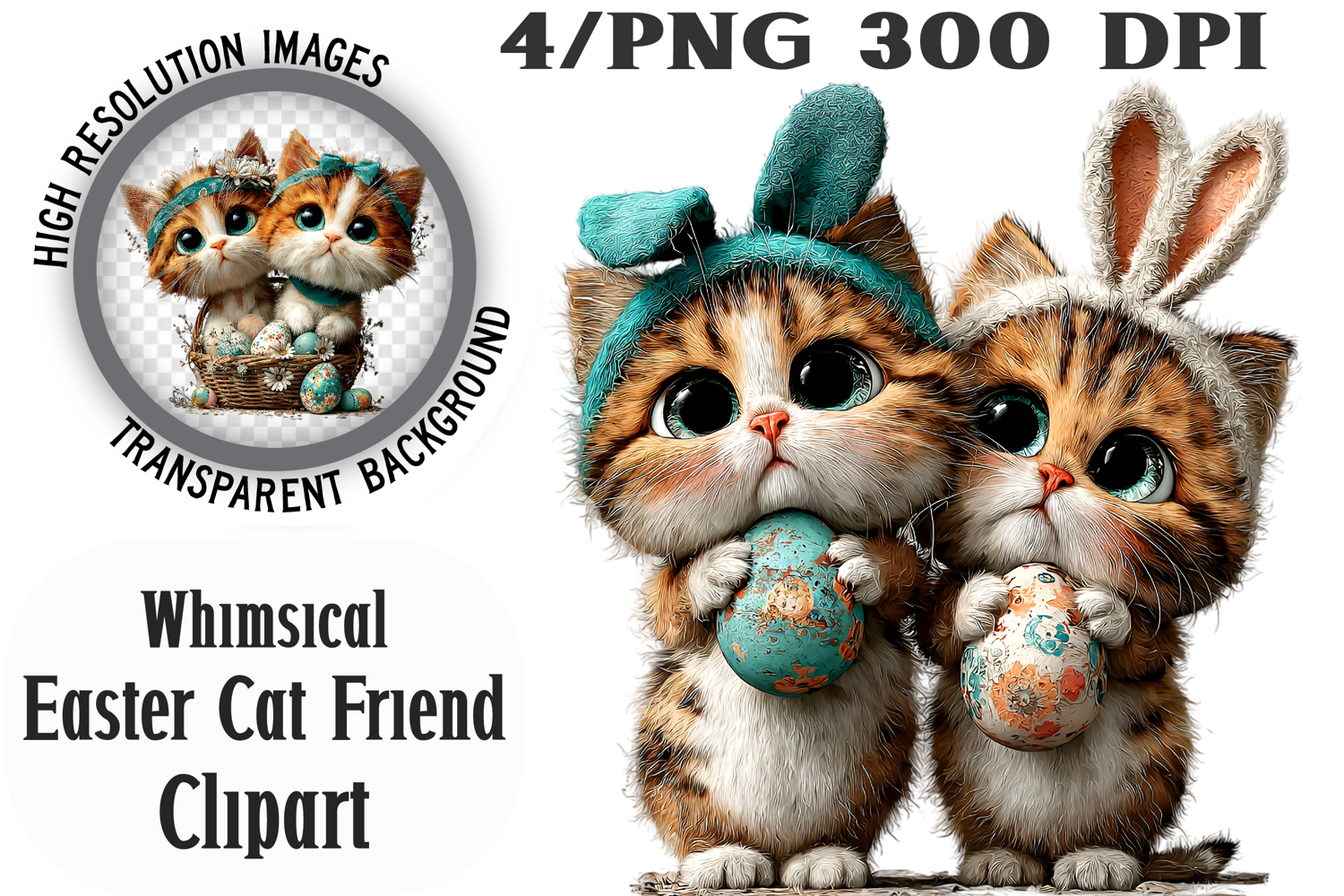 Whimsical Easter Cat Best Friend Clipart example image 1