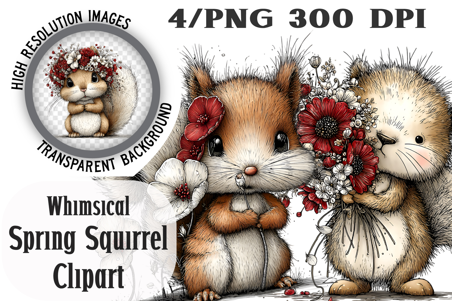 Whimsical Spring Squirrel Clipart Png example image 1