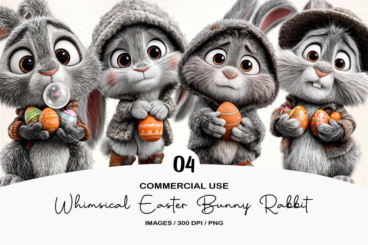 Whimsical Easter Bunny Rabbit Clipart
