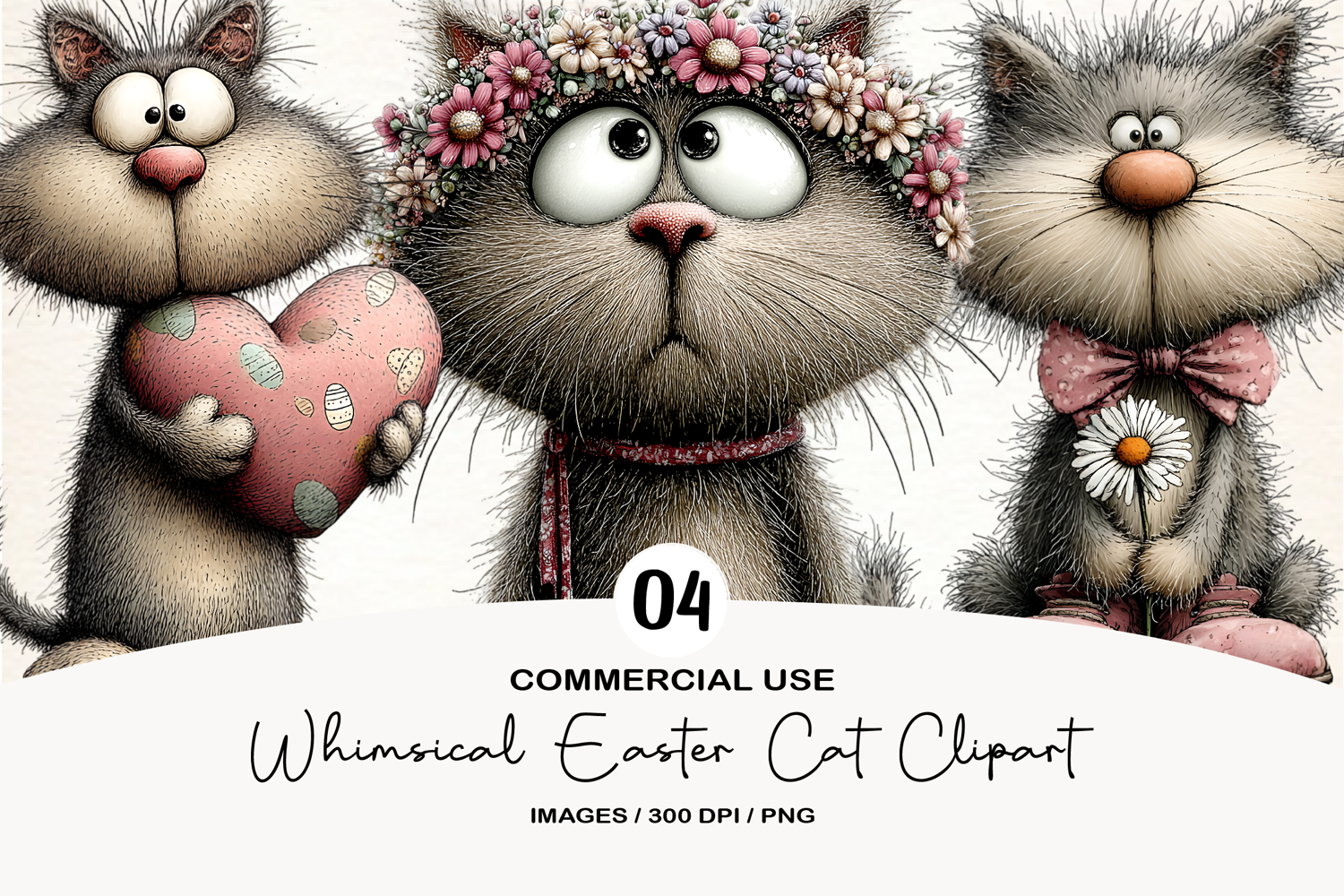 Easter Clipart Sublimation Easter Clipart Spring Png Easter Png Easter Sublimation Bunny Sublimation Retro Easter Whimsical Easter Cat Clipart