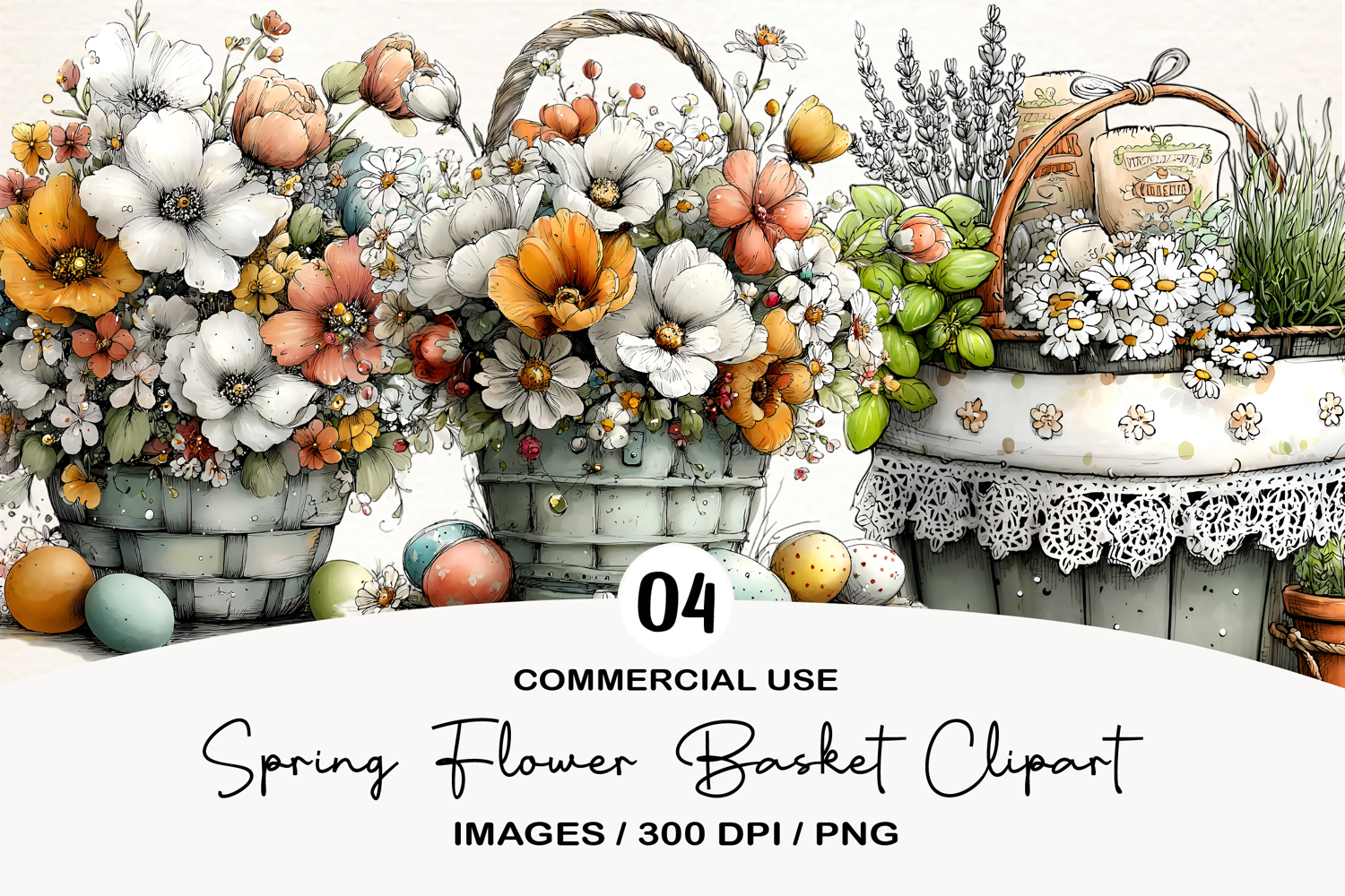 Easter Clipart Sublimation Easter Clipart Spring Png Easter Png Easter Sublimation Bunny Sublimation Retro Easter Spring Flower Basket Clipart