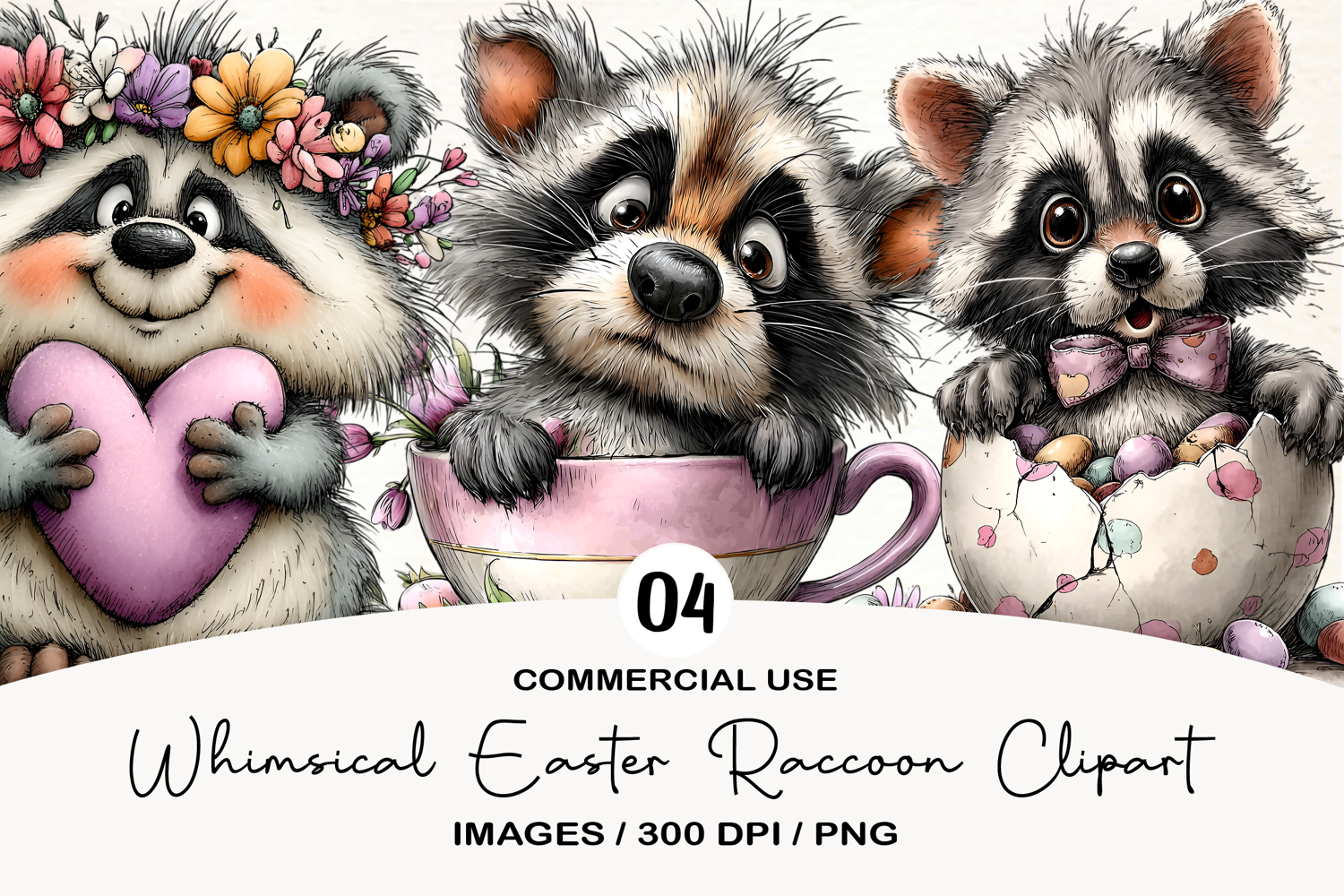 Similar Design Products to Whimsical Easter Raccoon Clipart