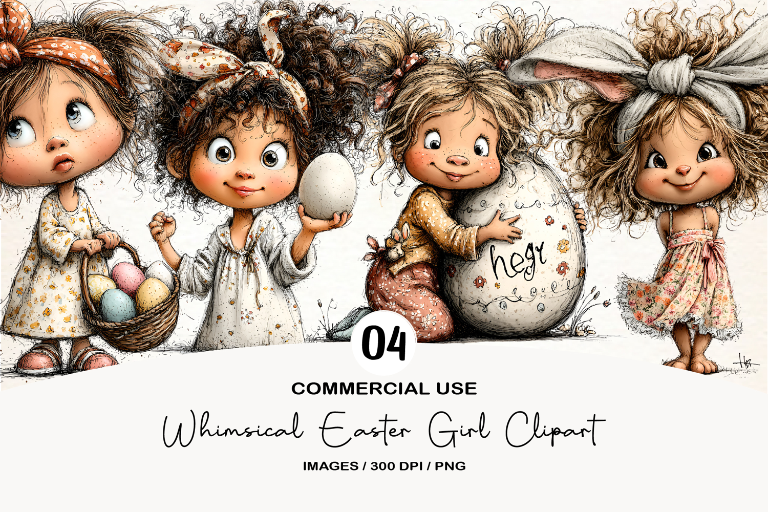 Easter Clipart Sublimation Easter Clipart Spring Png Easter Png Easter Sublimation Bunny Sublimation Retro Easter Whimsical Easter Girl Clipart