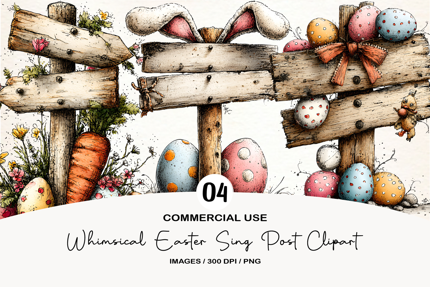 Whimsical Easter Sing Post Clipart example image 1