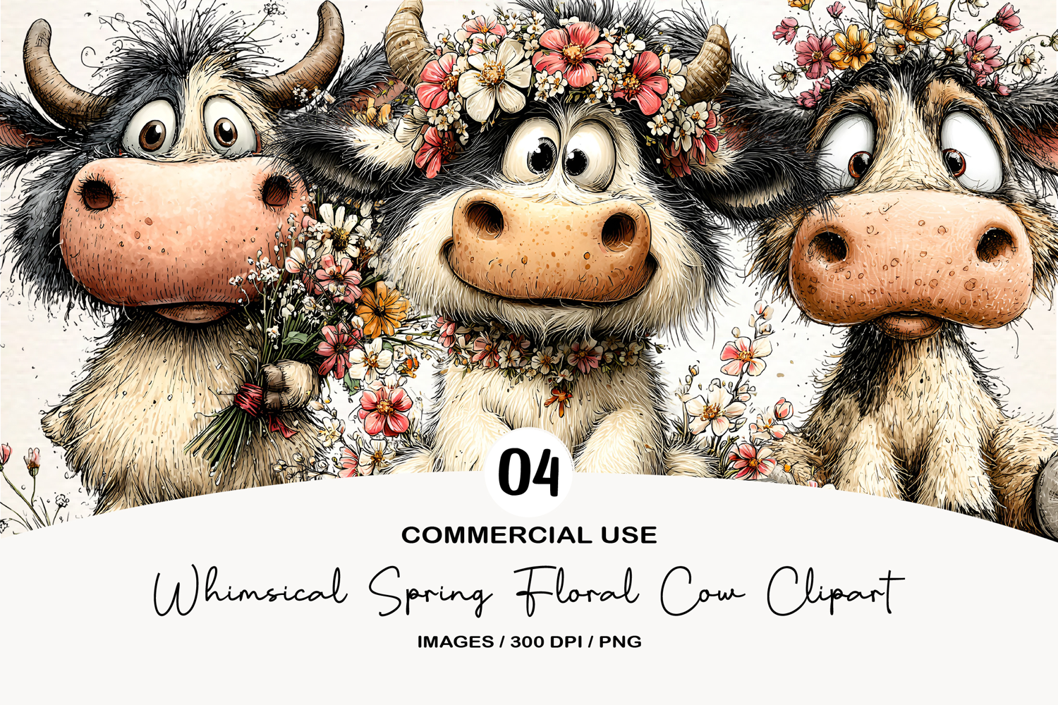 Whimsical Spring Floral Cow Clipart