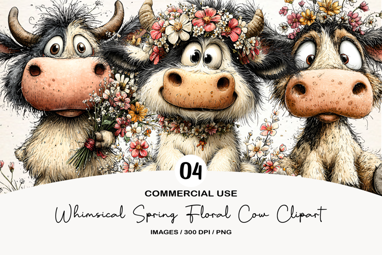Similar Design Products to Whimsical Spring Floral Cow Clipart