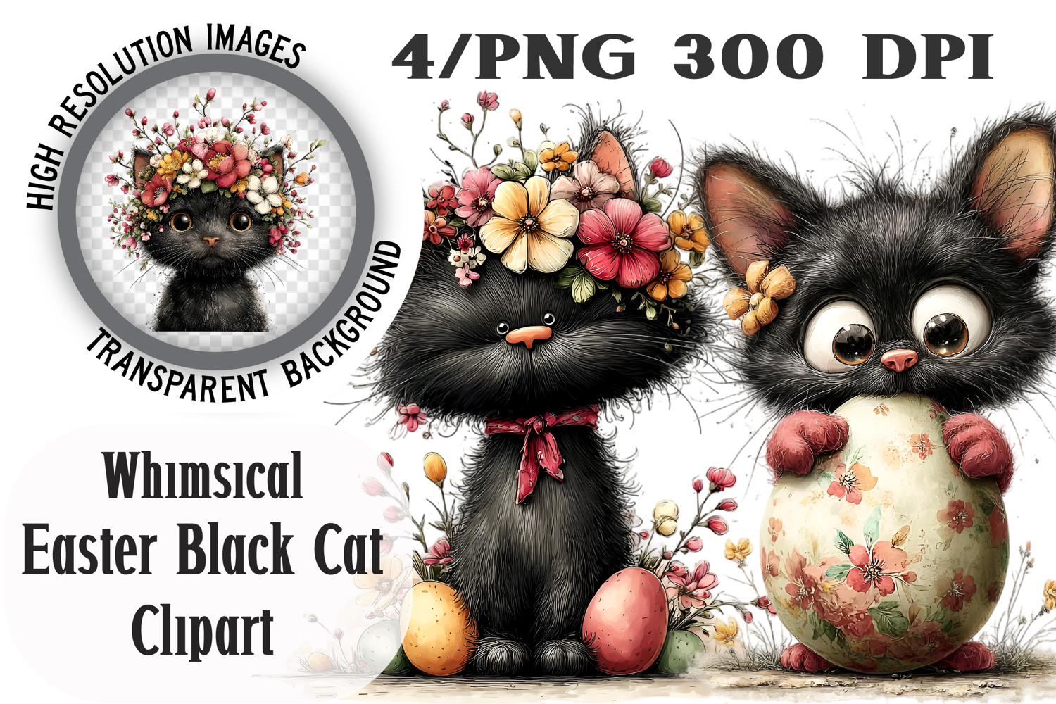 Similar Design Products to Whimsical Easter Black Cat Clipart