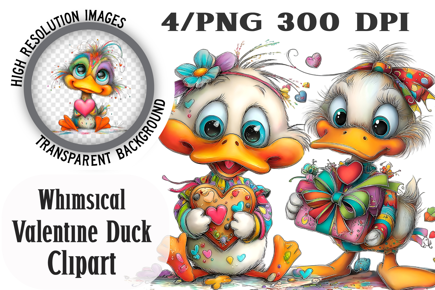 Whimsical Valentine Duck Clipart