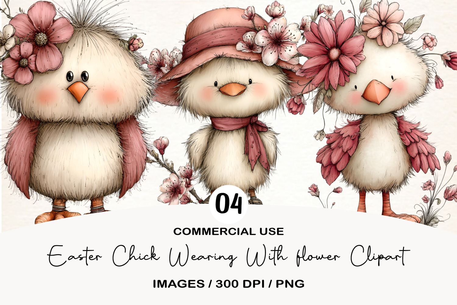 Easter Clipart Sublimation Easter Clipart Spring Png Easter Png Easter Sublimation Bunny Sublimation Retro Easter Easter Chick Wearing With Flower Clipart