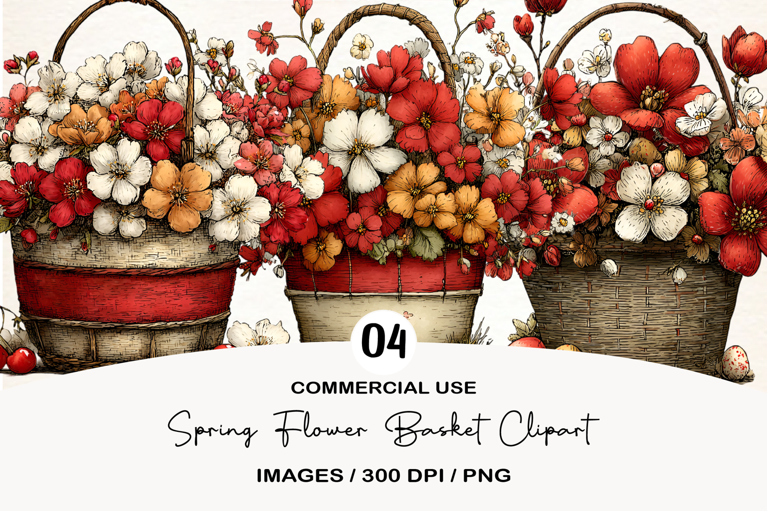 Spring Flower Basket Clipart example image 1