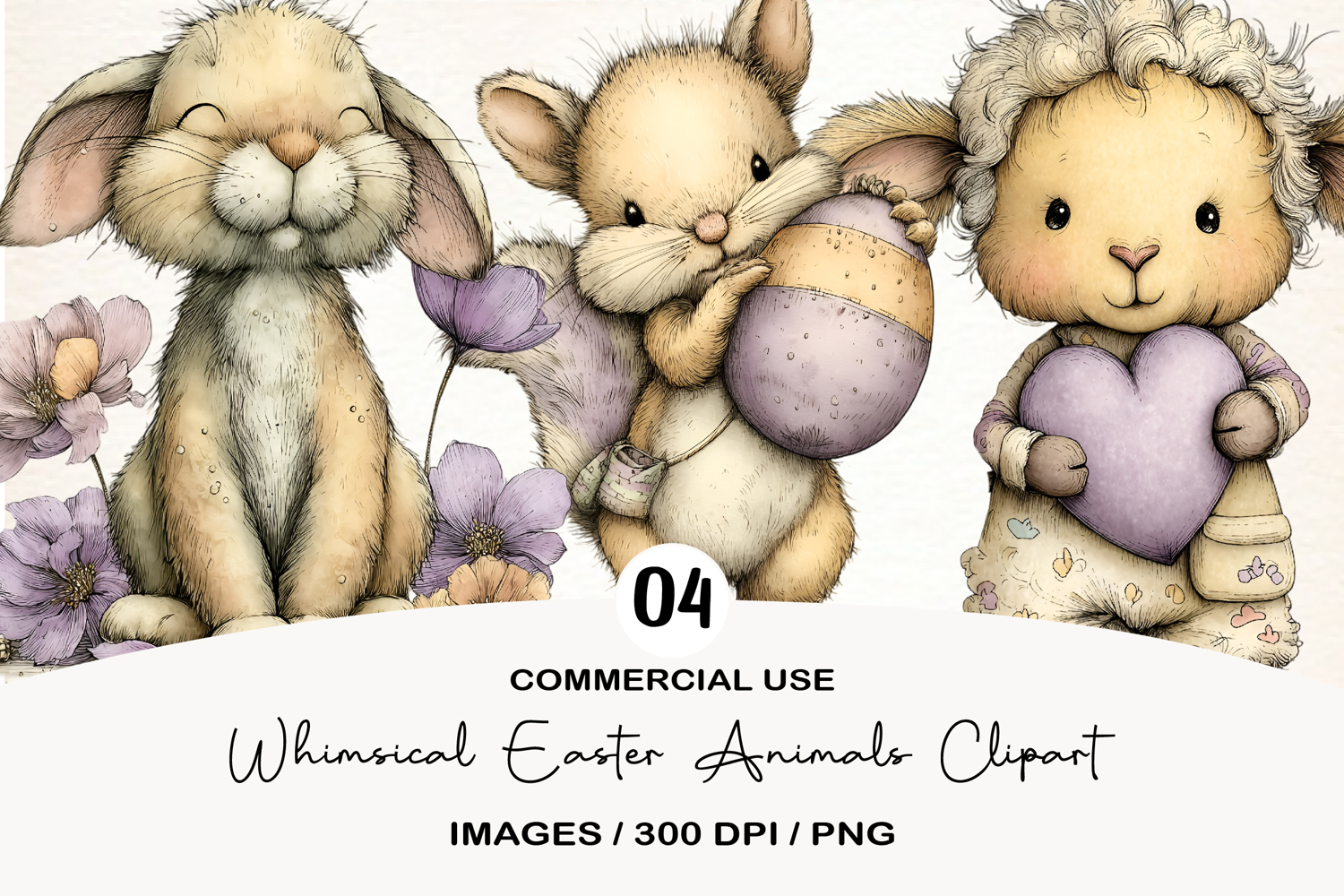 Easter Clipart Sublimation Easter Clipart Spring Png Easter Png Easter Sublimation Bunny Sublimation Retro Easter Whimsical Easter Animals Clipart