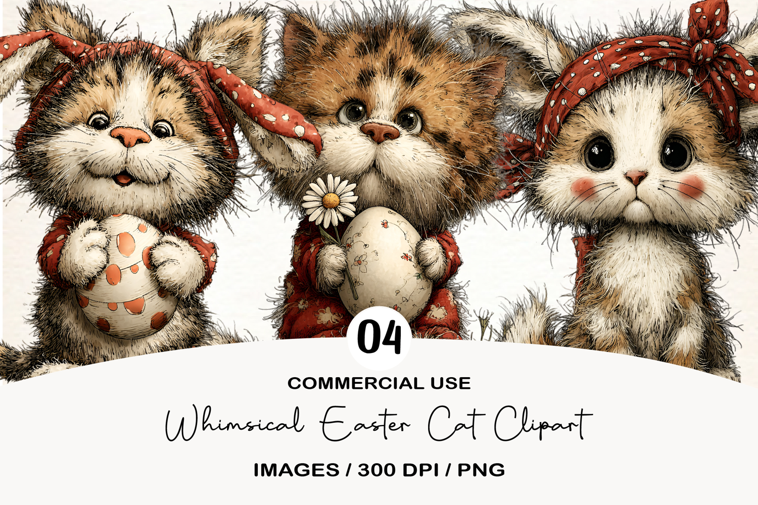 Whimsical Easter Cat Clipart example image 1