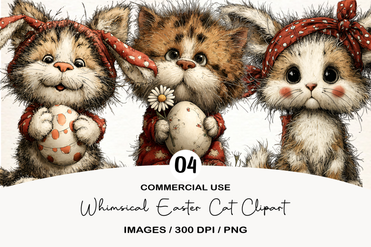 Whimsical Easter Cat Clipart