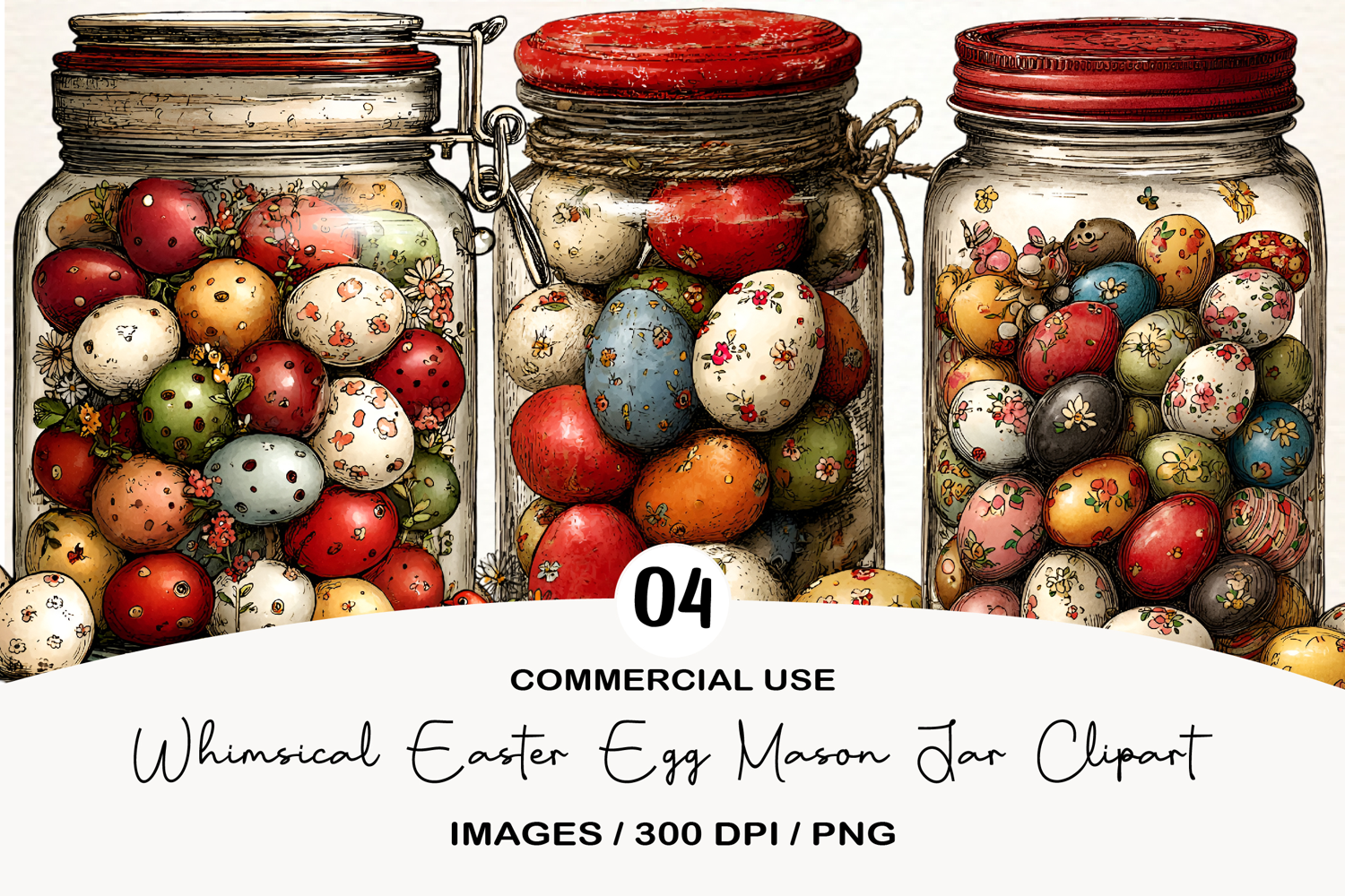 Whimsical Easter Egg Mason Jar Clipart example image 1