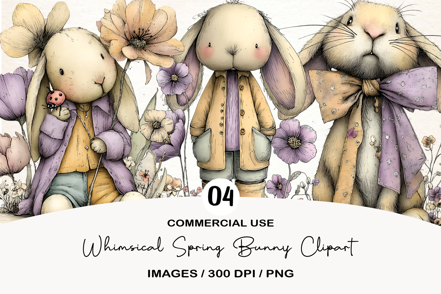 Similar Design Products to Whimsical Spring Bunny Clipart