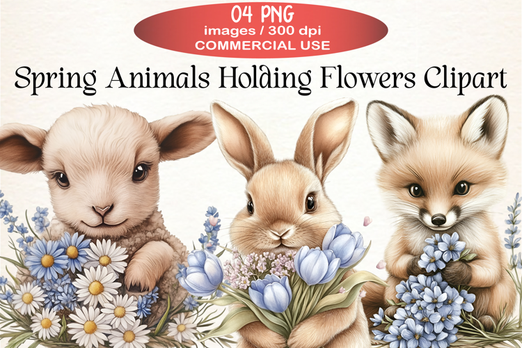 Similar Design Products to Spring Animals Holding Flowers Clipart