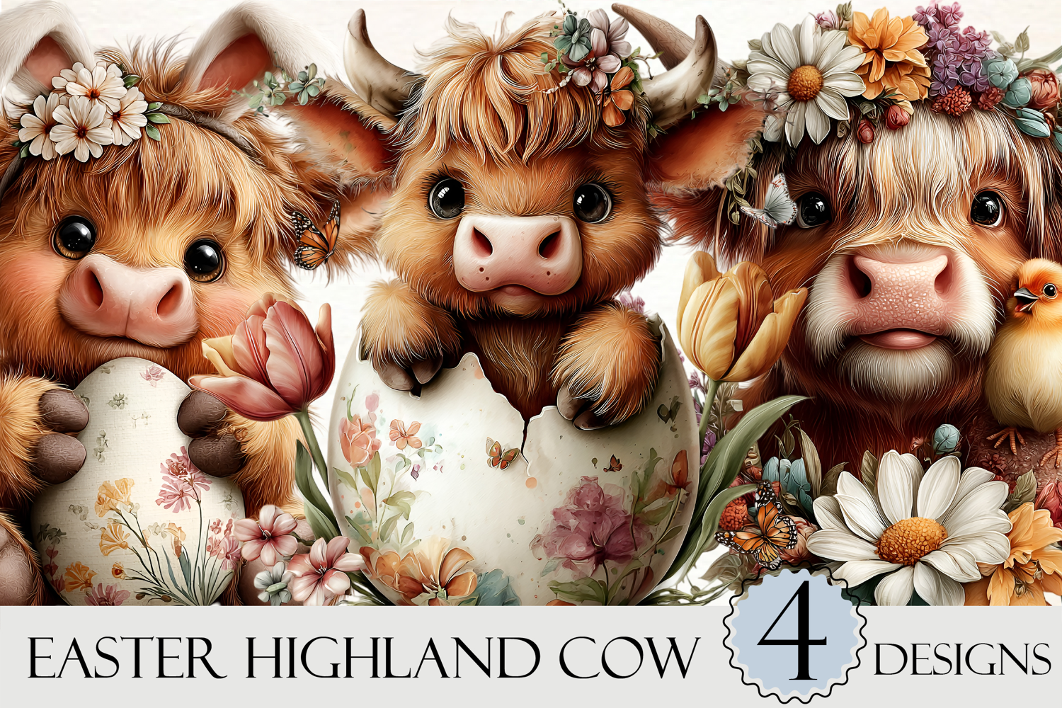 Similar Design Products to Whimsical Easter Highland Cow Clipart