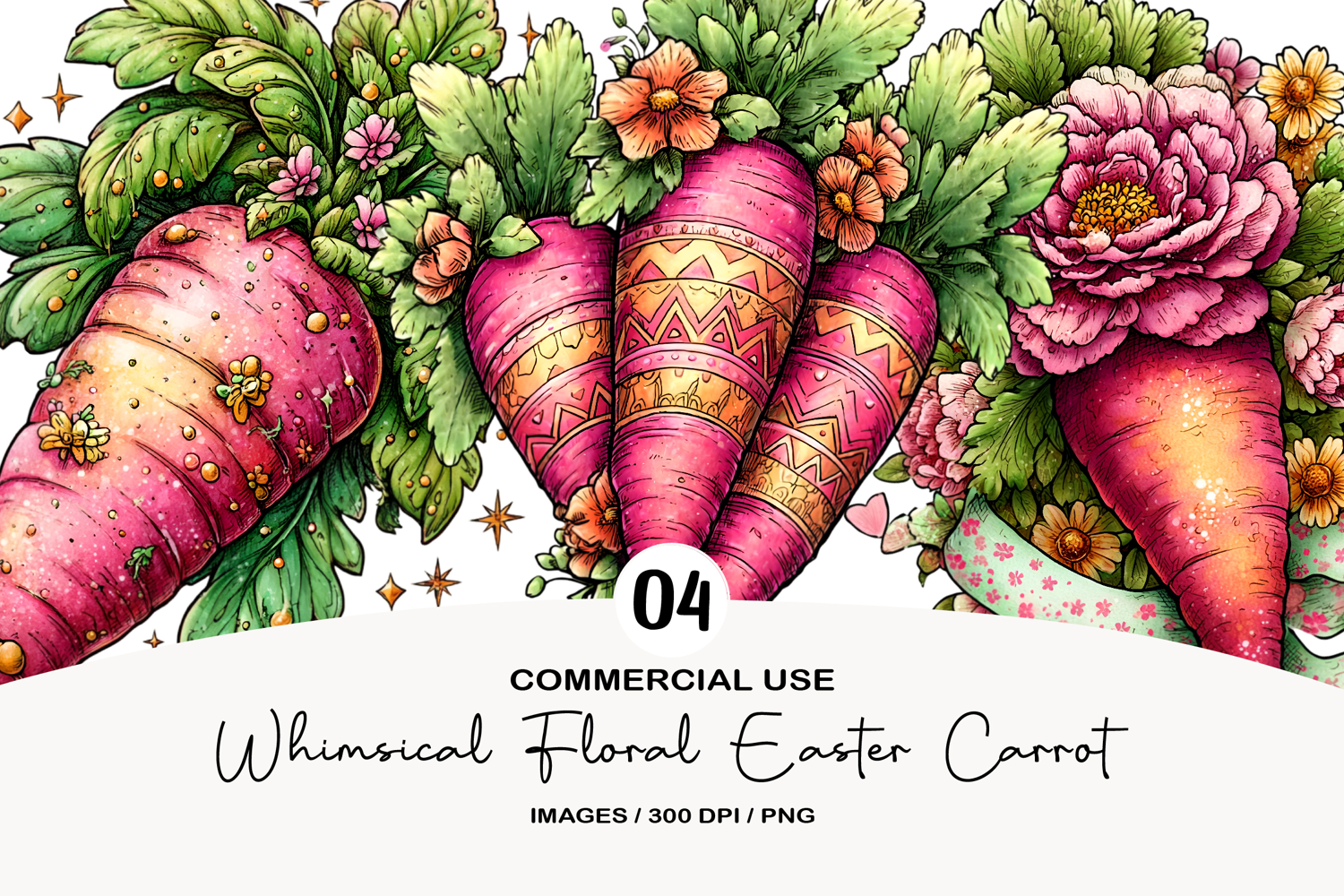 Whimsical Floral Easter Carrot Clipart