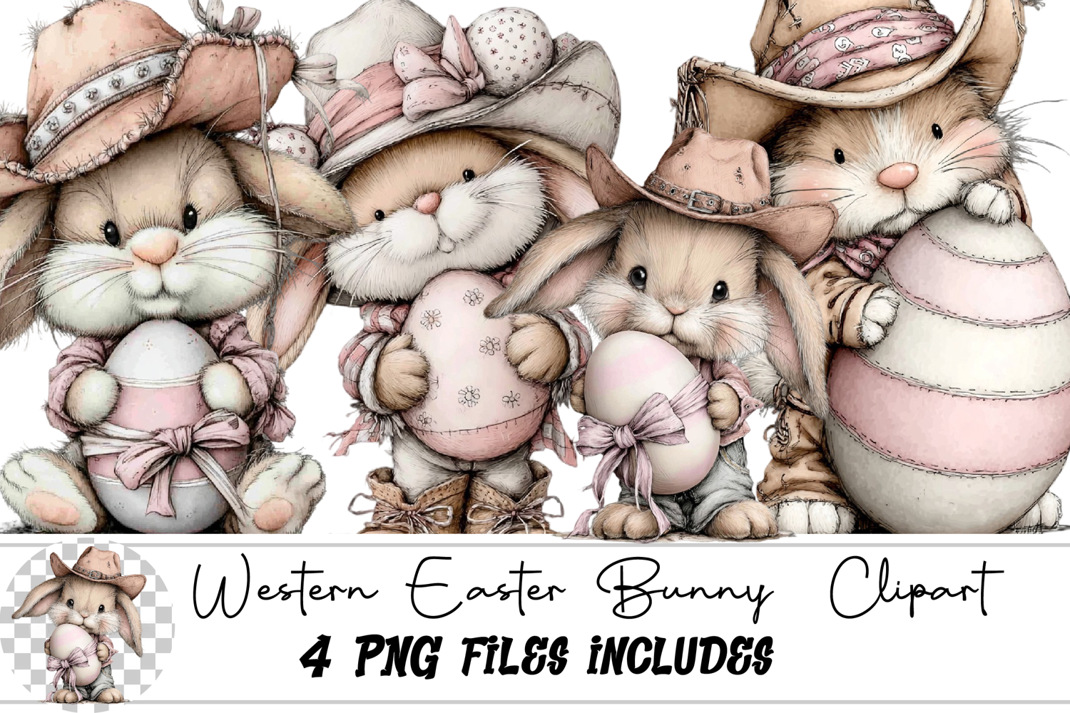 Western Easter Bunny Clipart example image 1