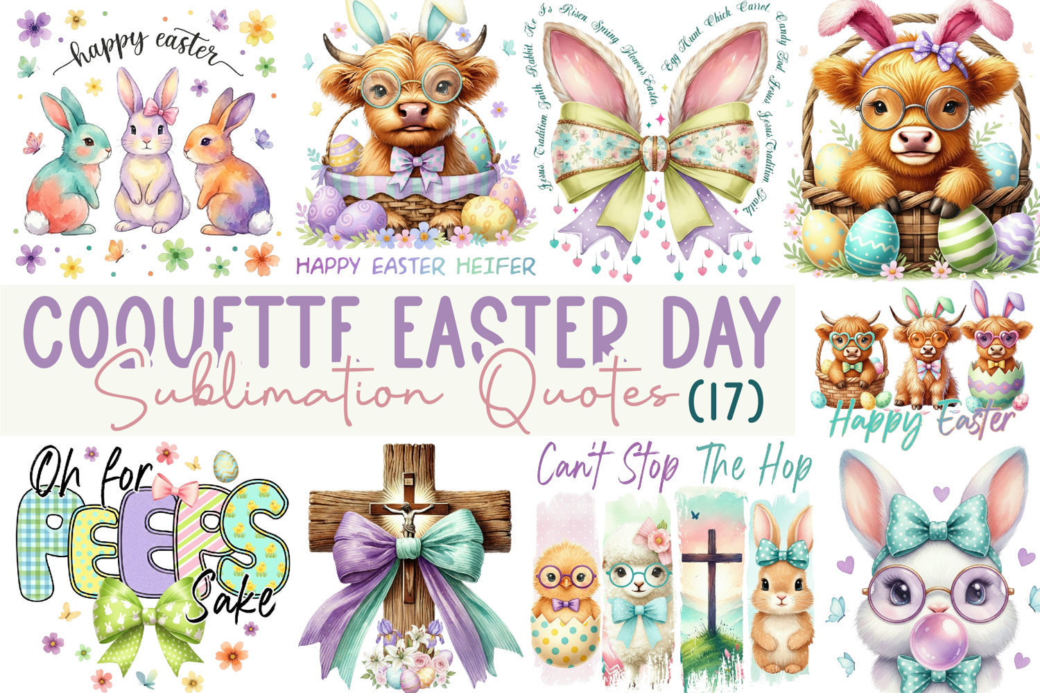 Coquette Easter Day Sublimation Quotes Bundle PNG