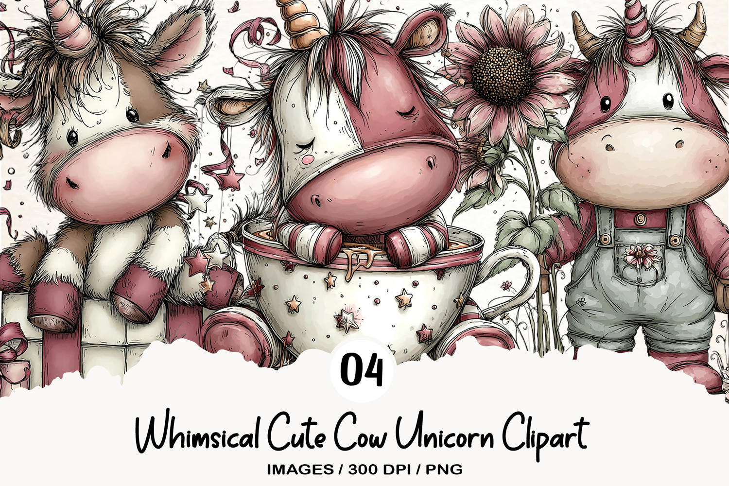 Whimsical Cute Caw Unicorn Clipart