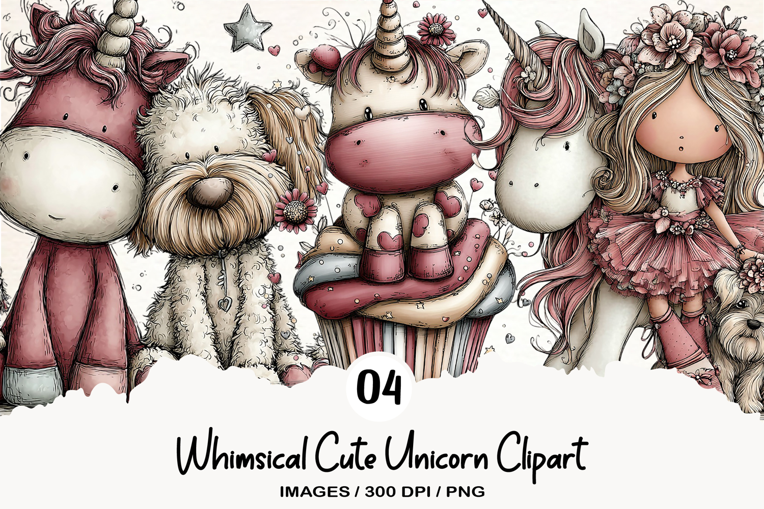 Whimsical Cute Unicorn Clipart PNG example image 1