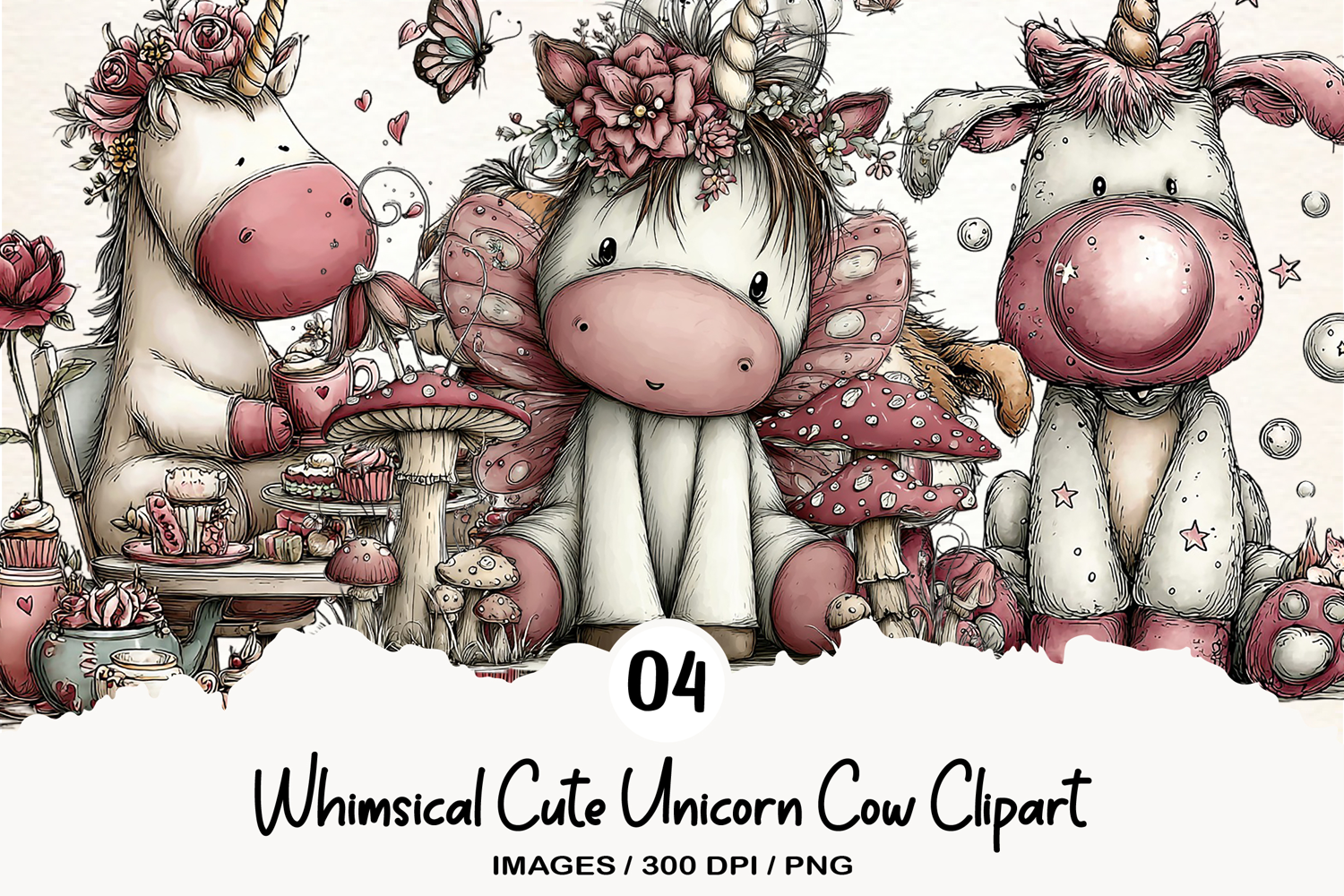 Whimsical Cute Unicorn Cow Clipart example image 1