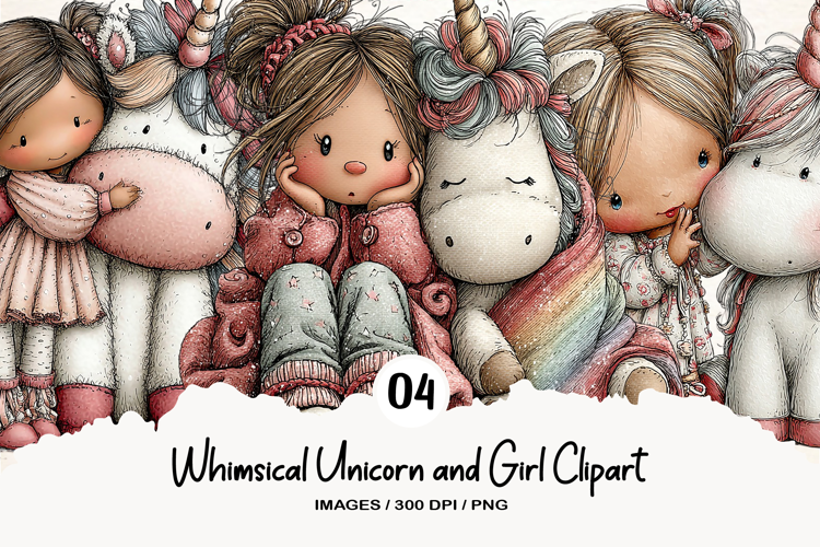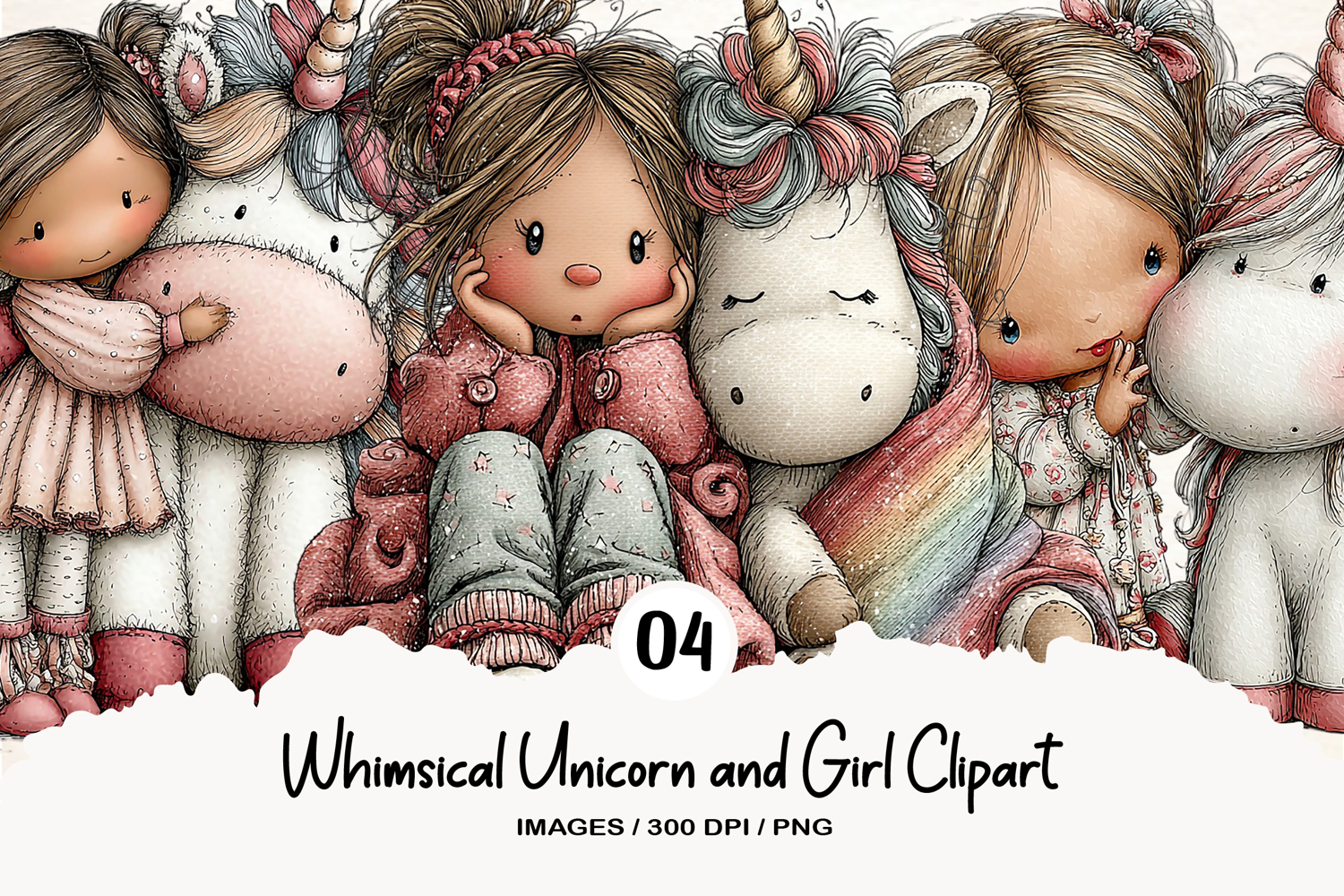 Similar Design Products to Whimsical Unicorn and Girl Clipart