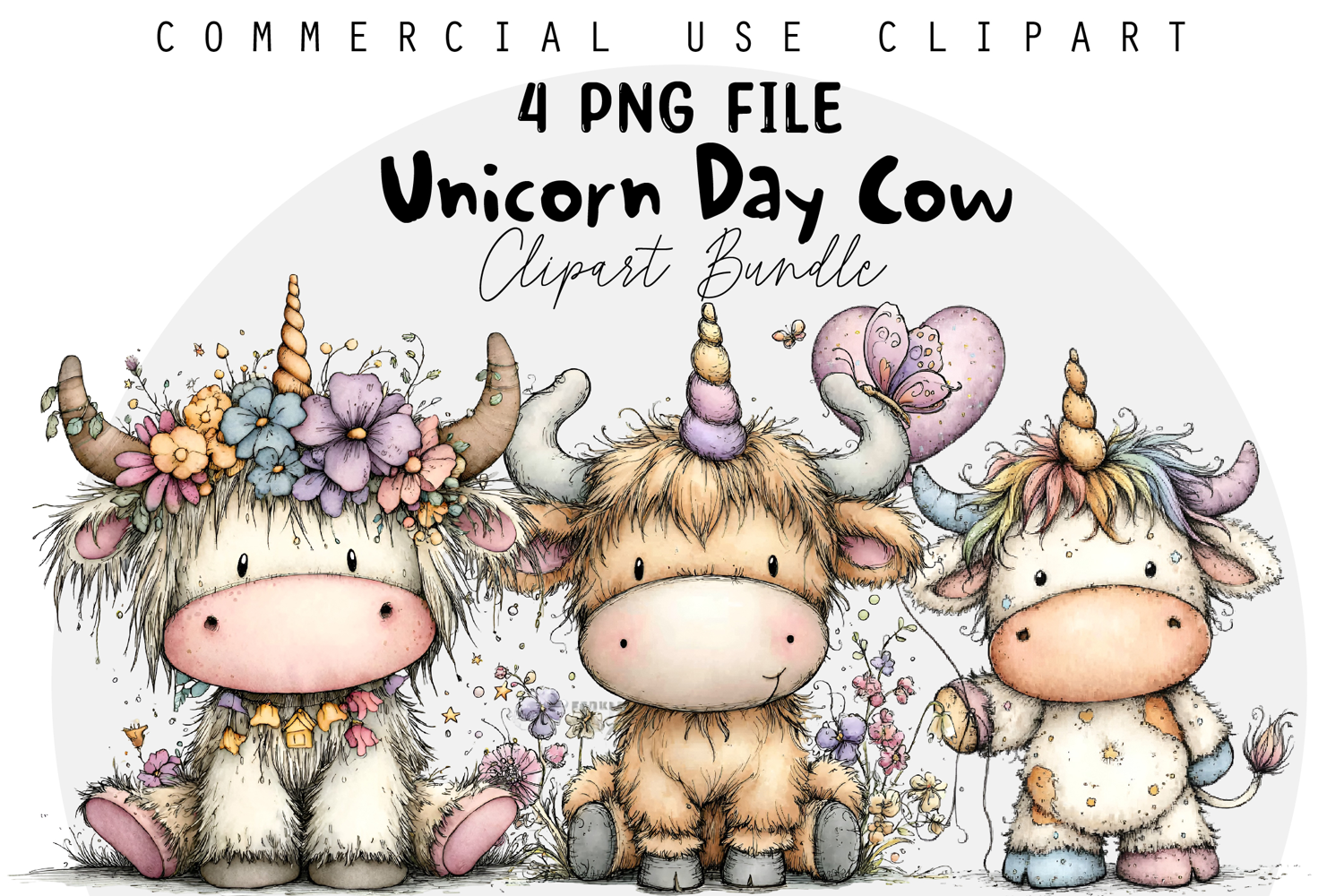 Similar Design Products to Whimsical Unicorn Day Highland Cow Clipart