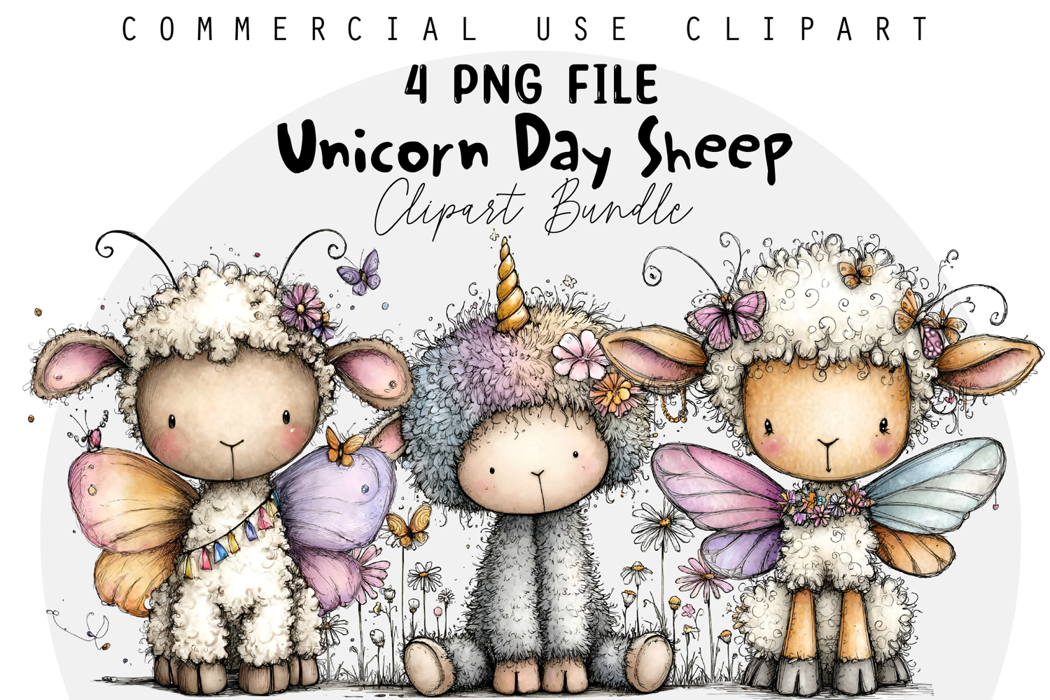Whimsical Unicorn Day Sheep Clipart example image 1
