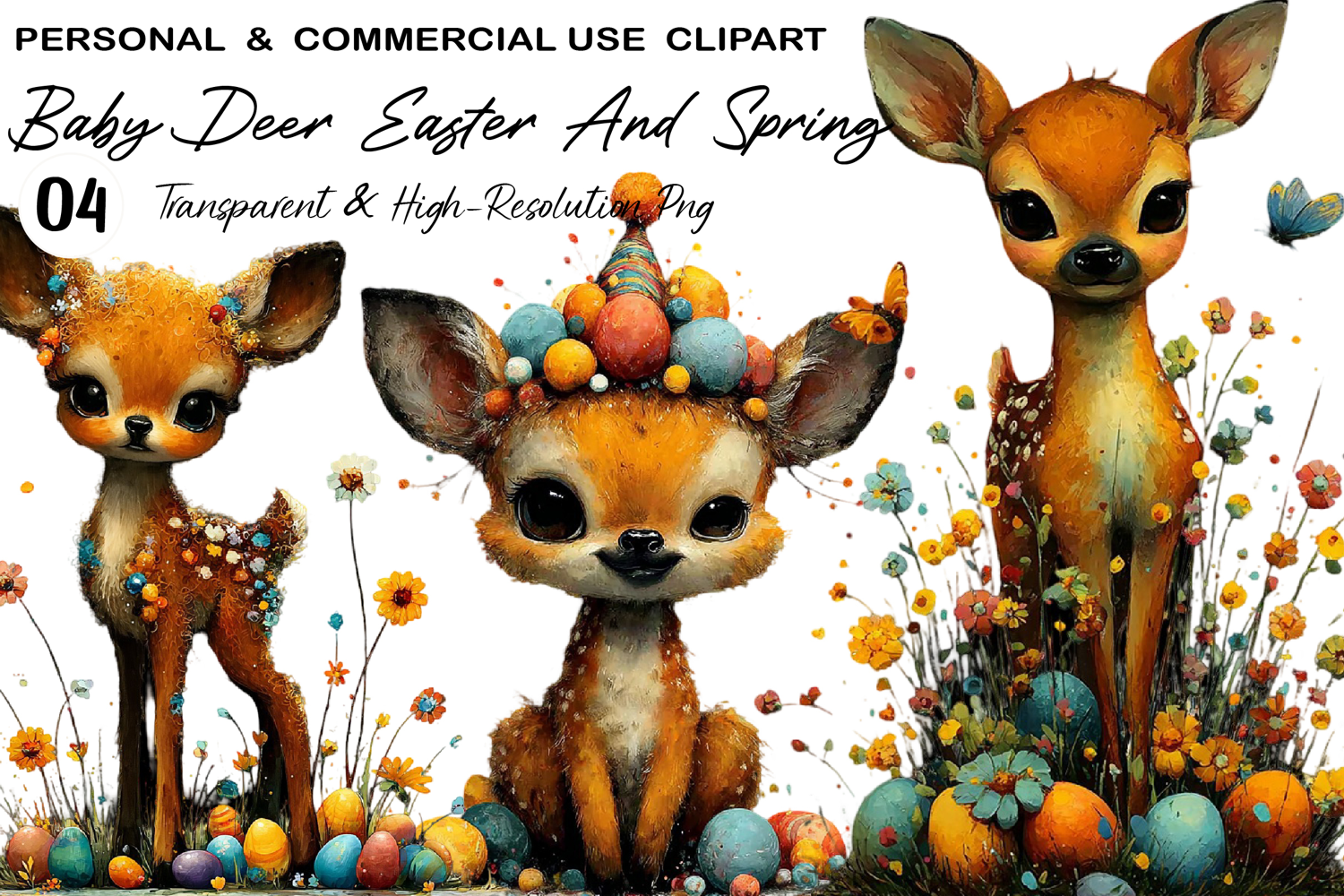 Spring Whimsical Easter Clipart Easter Eggs Digital Download Sublimation Easter Clipart Easter Sublimation Baby Deer Easter And Spring Clipart