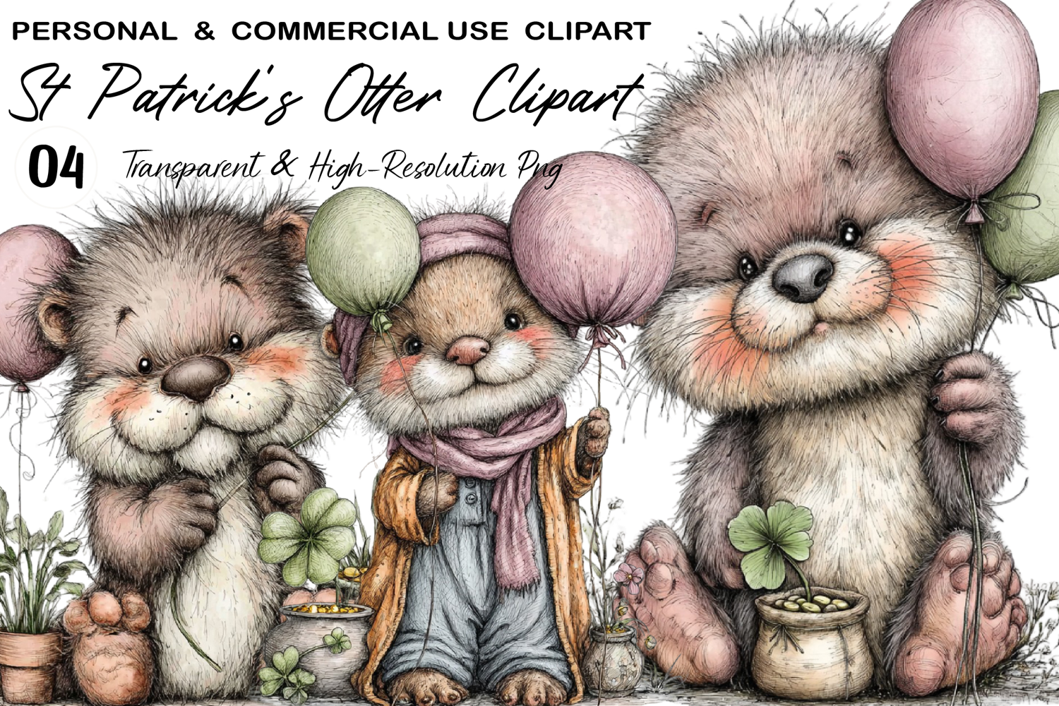 Animals Whimsical Clipart Lucky Digital Download Sublimation St Patrick's St Patrick's Clipart St Patrick's Sublimation St Patrick's Otter Clipart