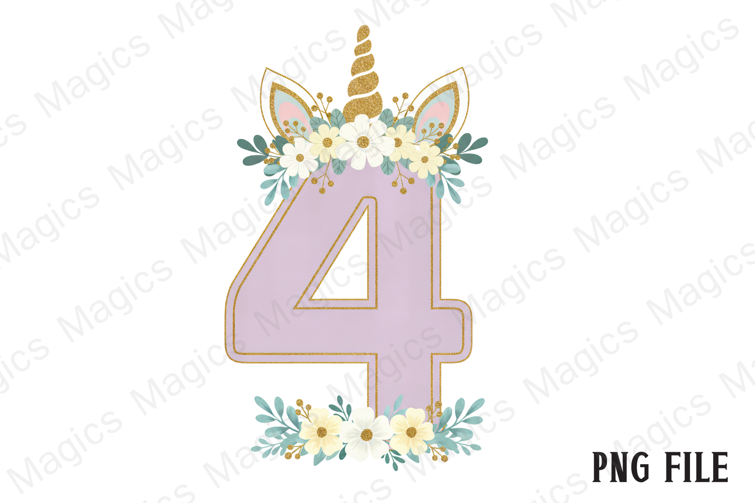 Sticker Digital Download Sublimation Unicorn Clipart Unicorn Png Birthday Girl Unicorn Design Number Clipart Unicorn Sublimation 4th Birthday Girl Unicorn Number Clipart
