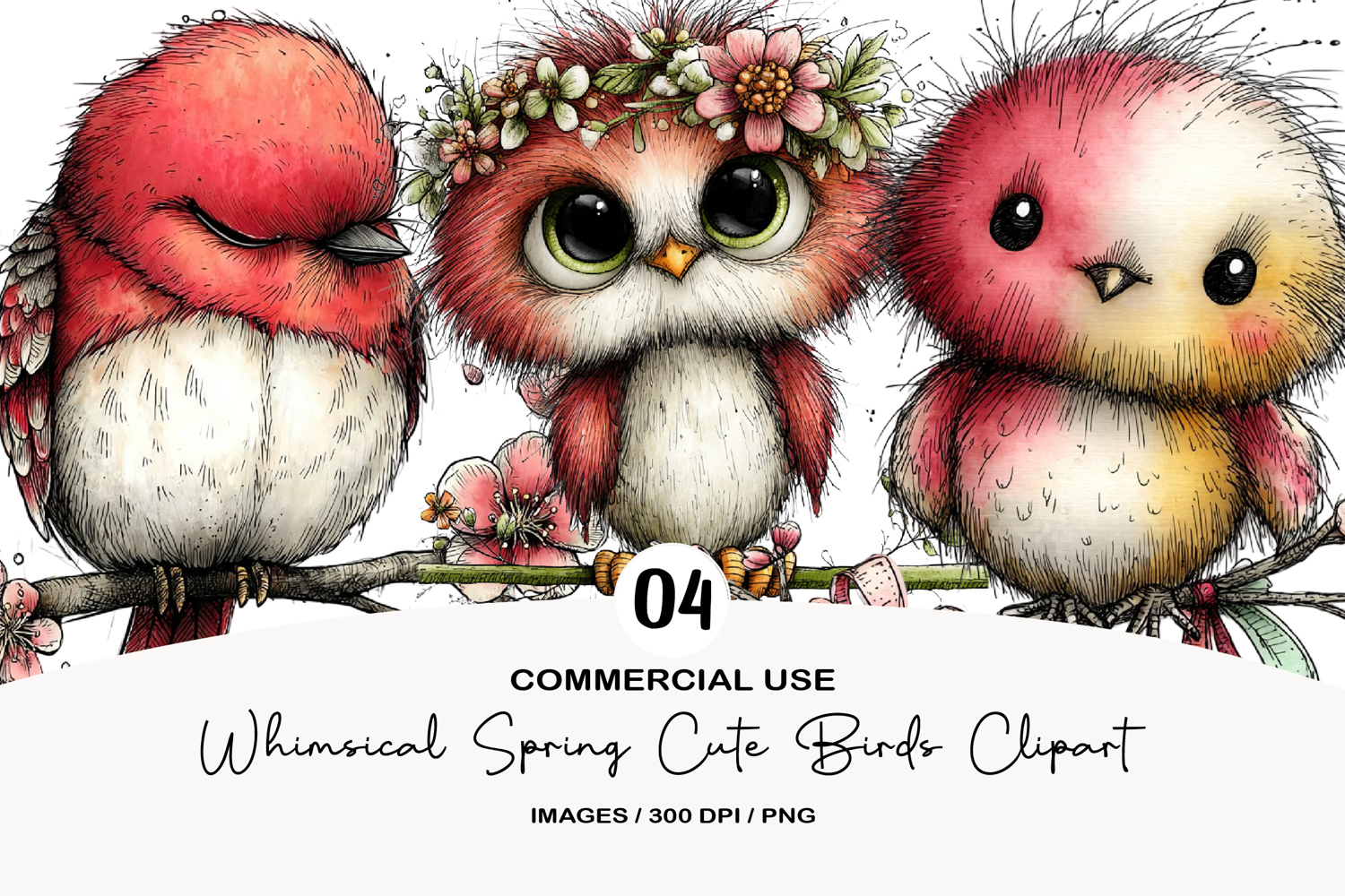 Whimsical Spring Cute Birds Clipart