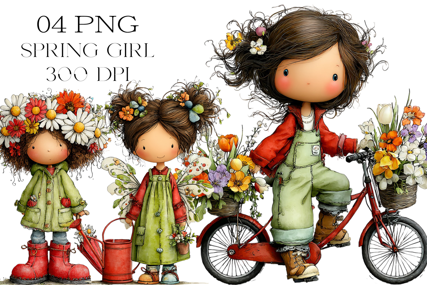 Quirky Spring Cute Girl Clipart