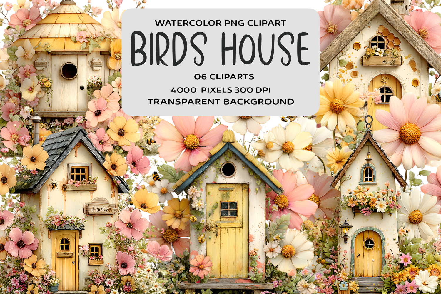 Sticker Easter Digital Download Spring Clipart Spring Sublimation Whimsical Spring Whimsical Easter Png Easter Cute Animals Clipart Whimsical Easter Sublimation Spring Birds House Clipart