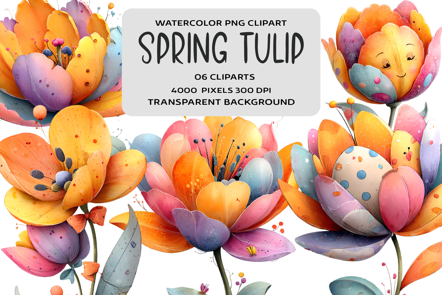 Whimsical Spring Tulip Clipart
