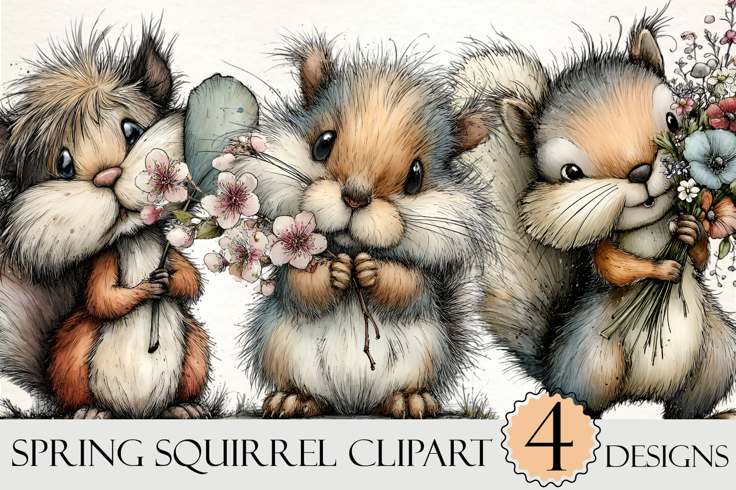 Watercolor Spring Squirrel Clipart