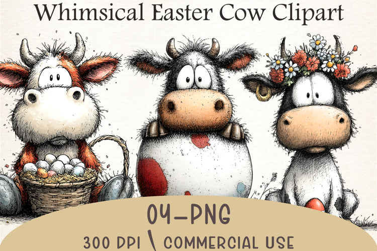 Sticker Easter Digital Download Spring Clipart Spring Sublimation Whimsical Spring Whimsical Easter Cow Clipart Whimsical Easter Png Easter Cute Animals Clipart Whimsical Easter Sublimation