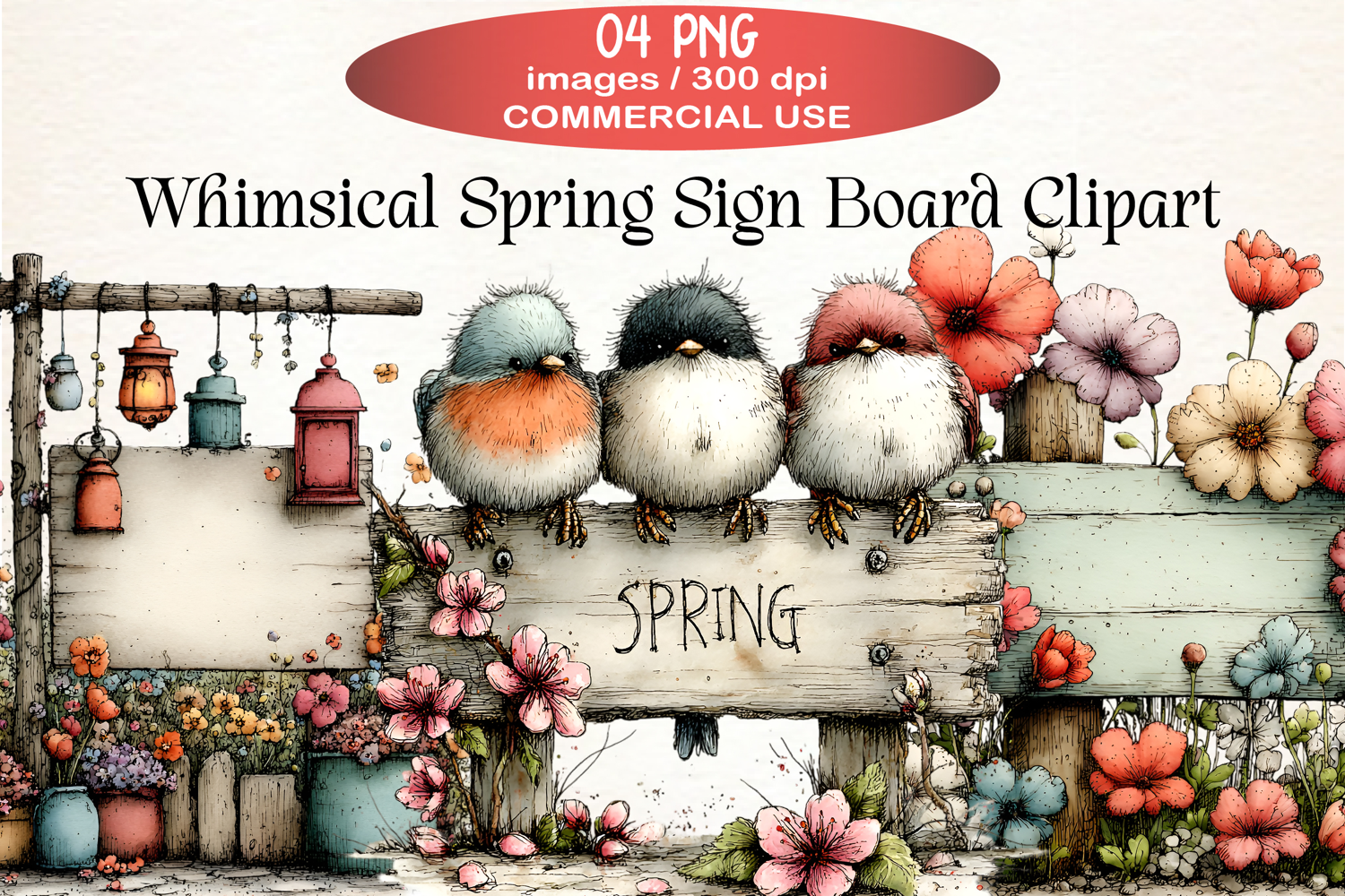 Similar Design Products to Whimsical Spring Sign Board Clipart