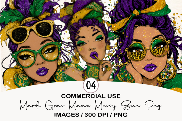 Mardi Gras Mama Messy Bun Png example image 1