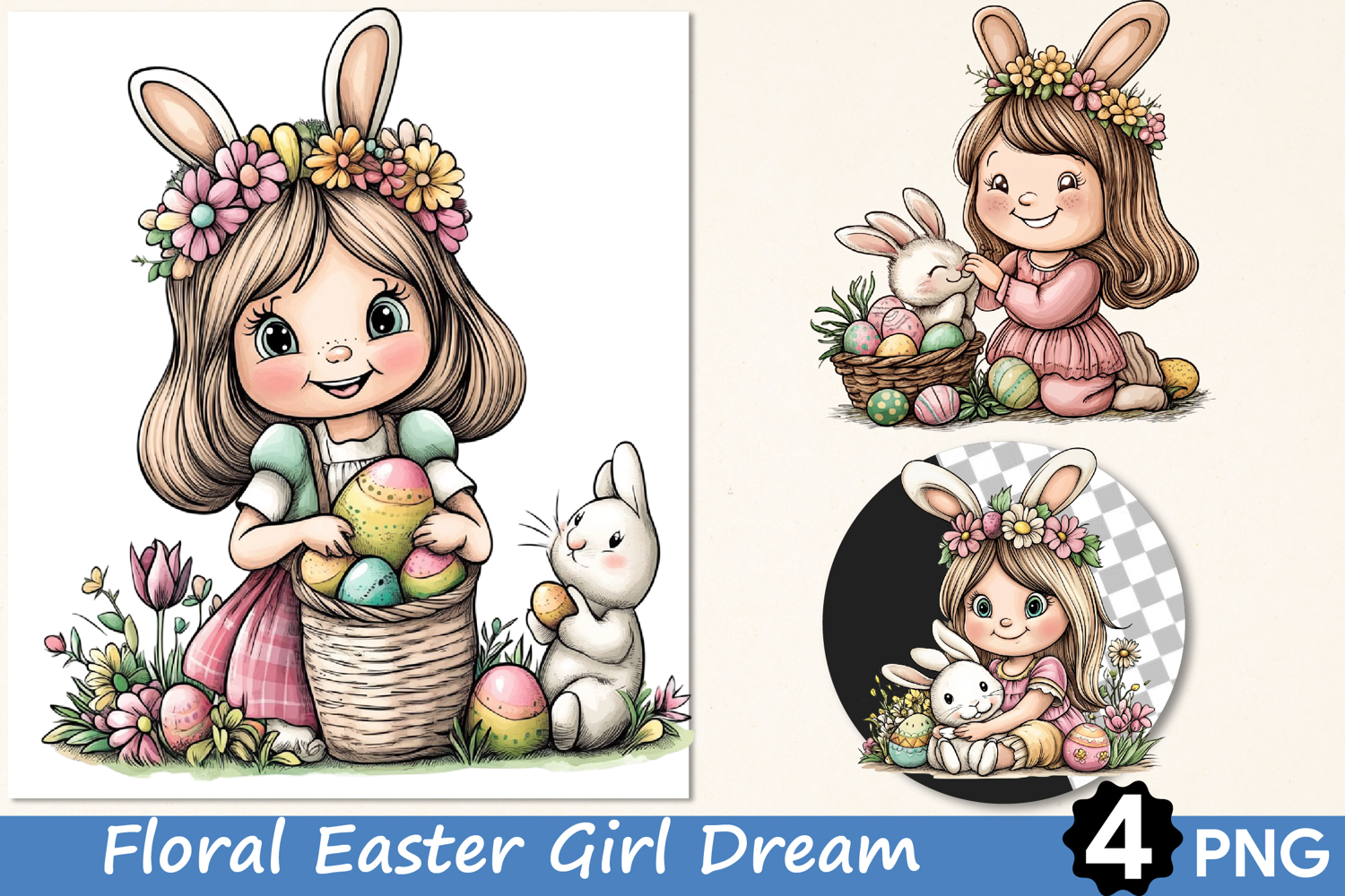 Floral Easter Girl Dream Clipart