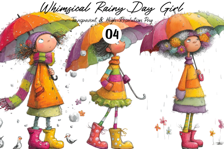 Similar Design Products to Whimsical Rainy Day Girl with Umbrella Clipart