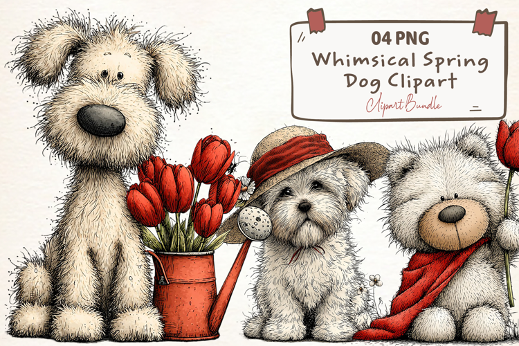 Whimsical Dogs Spring Clipart