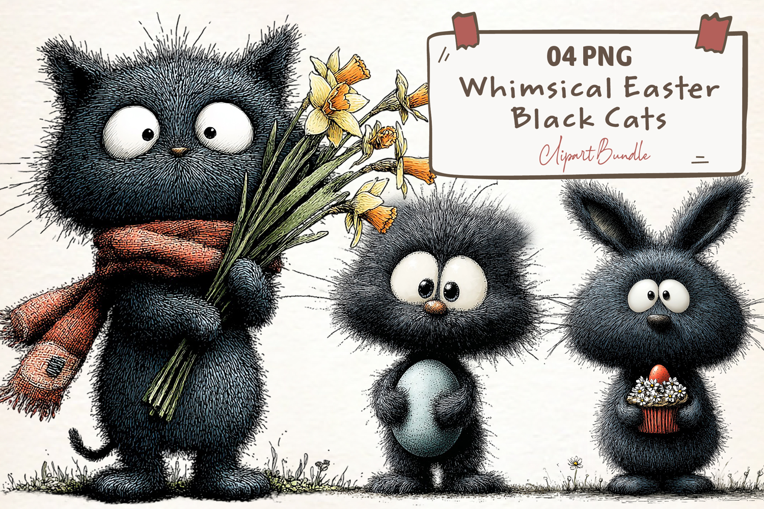 Similar Design Products to Whimsical Easter Black Cats Clipart