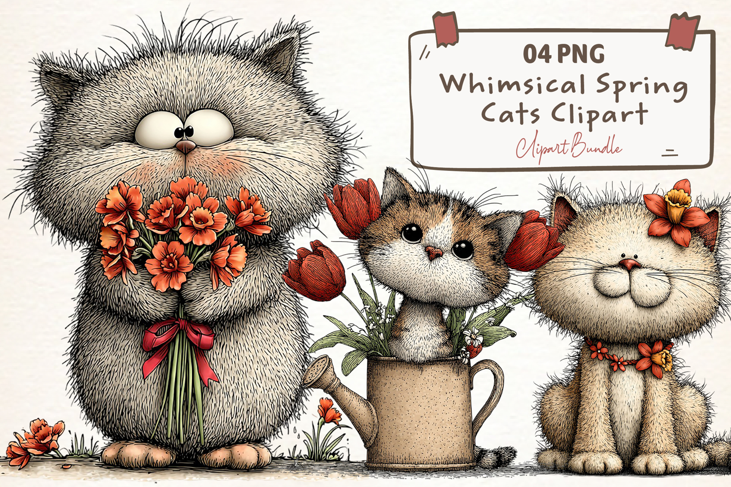 Whimsical Spring Cats Clipart
