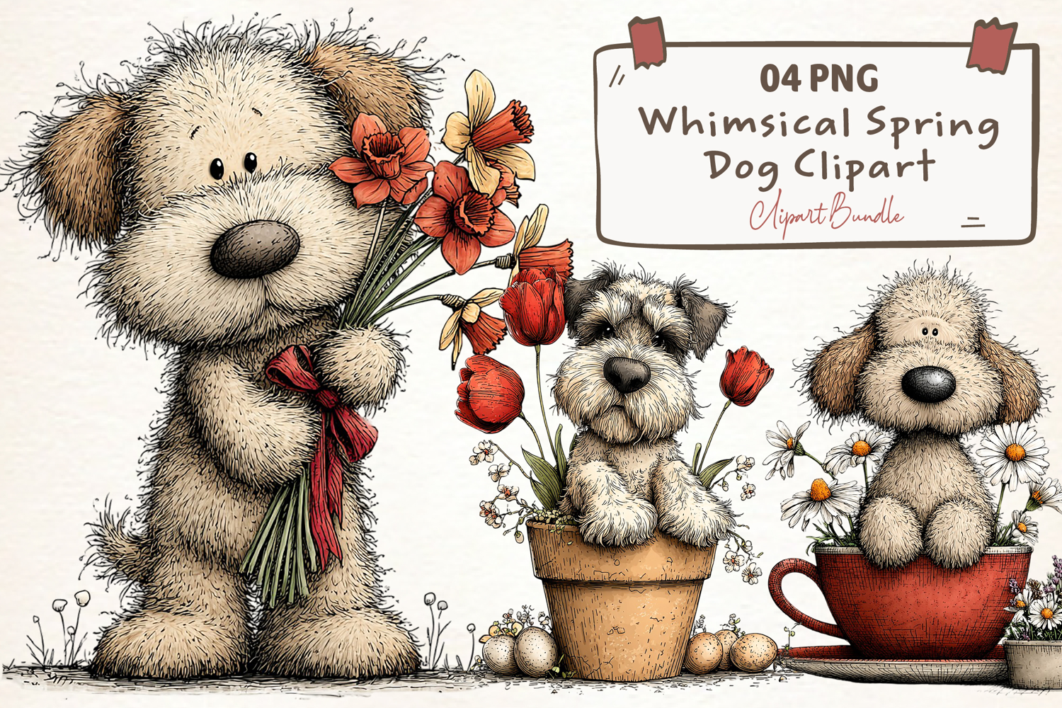 Sticker Easter Digital Download Spring Clipart Spring Sublimation Whimsical Spring Whimsical Easter Png Whimsical Spring Dog Clipart Easter Cute Animals Clipart Whimsical Easter Sublimation