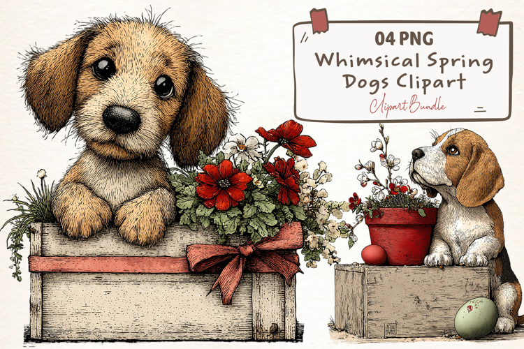 Whimsical Spring Dogs Clipart