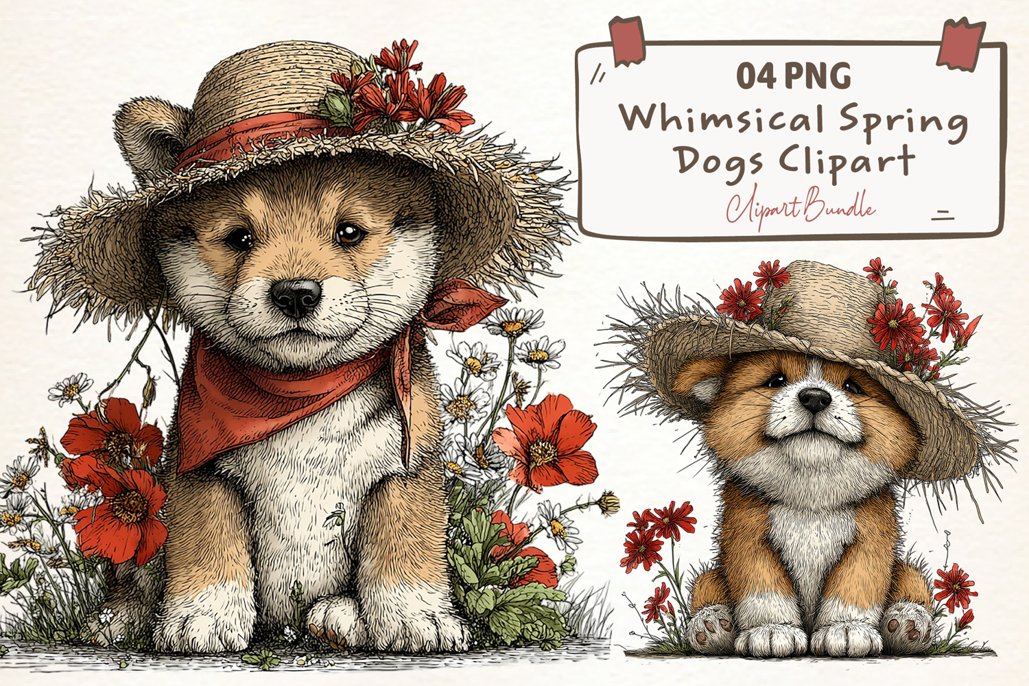 Similar Design Products to Whimsical Spring Funny Dog Clipart