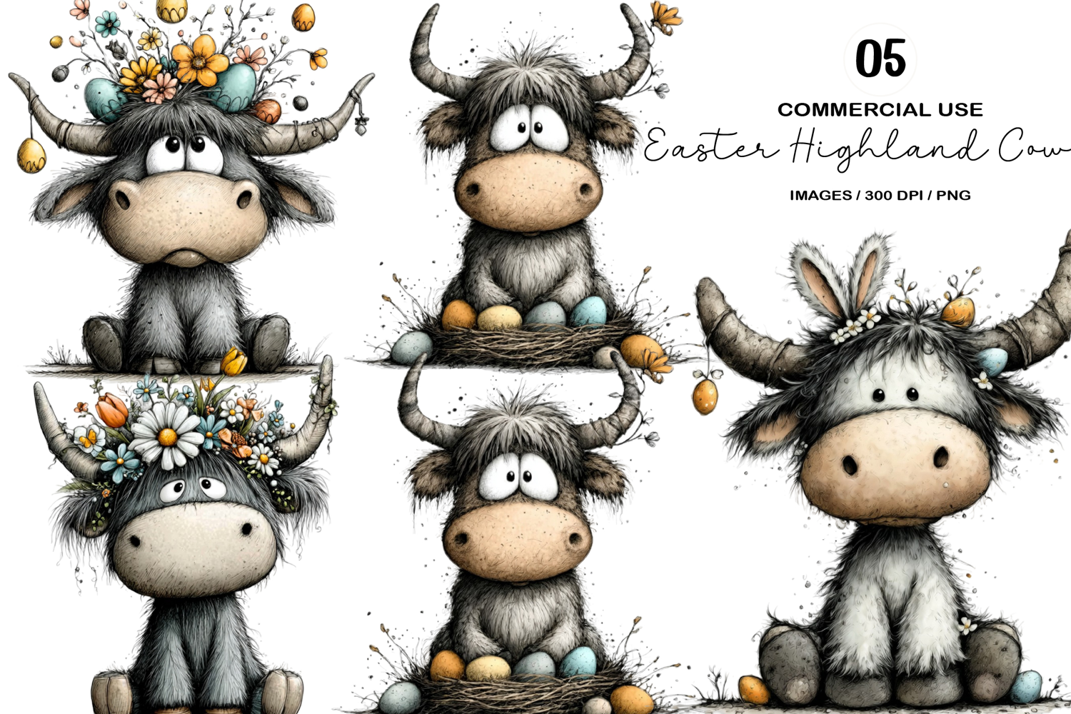 Similar Design Products to Whimsical Easter Highland Cow Clipart